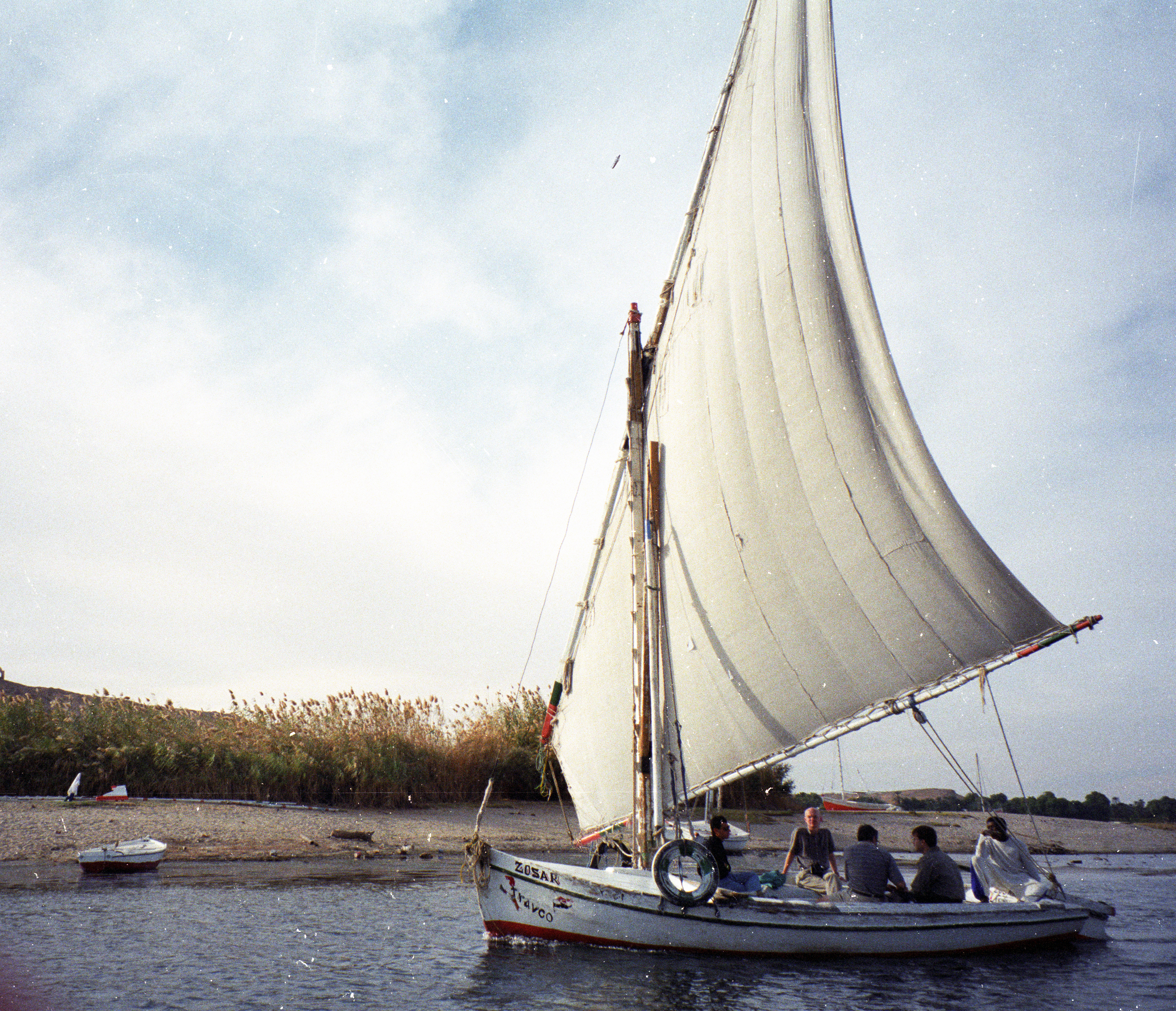 We started in Cairo, one or two nights and, of course visited the pyramids where we saw police on camels whipping away civilian men on camels; they were pestering us tourists. The museum was wonderful and it is there that I saw the brightly painted clay votive figures. The next stop was the boat, I think we flew or took a coach to Luxor to meet it. Not too big it was great, good food and a pleasant group to travel with. It was lovely sitting on the deck in the early evening chatting and drinking, watching the Nile go by. I was surprised how close the banks were and how green they could be.